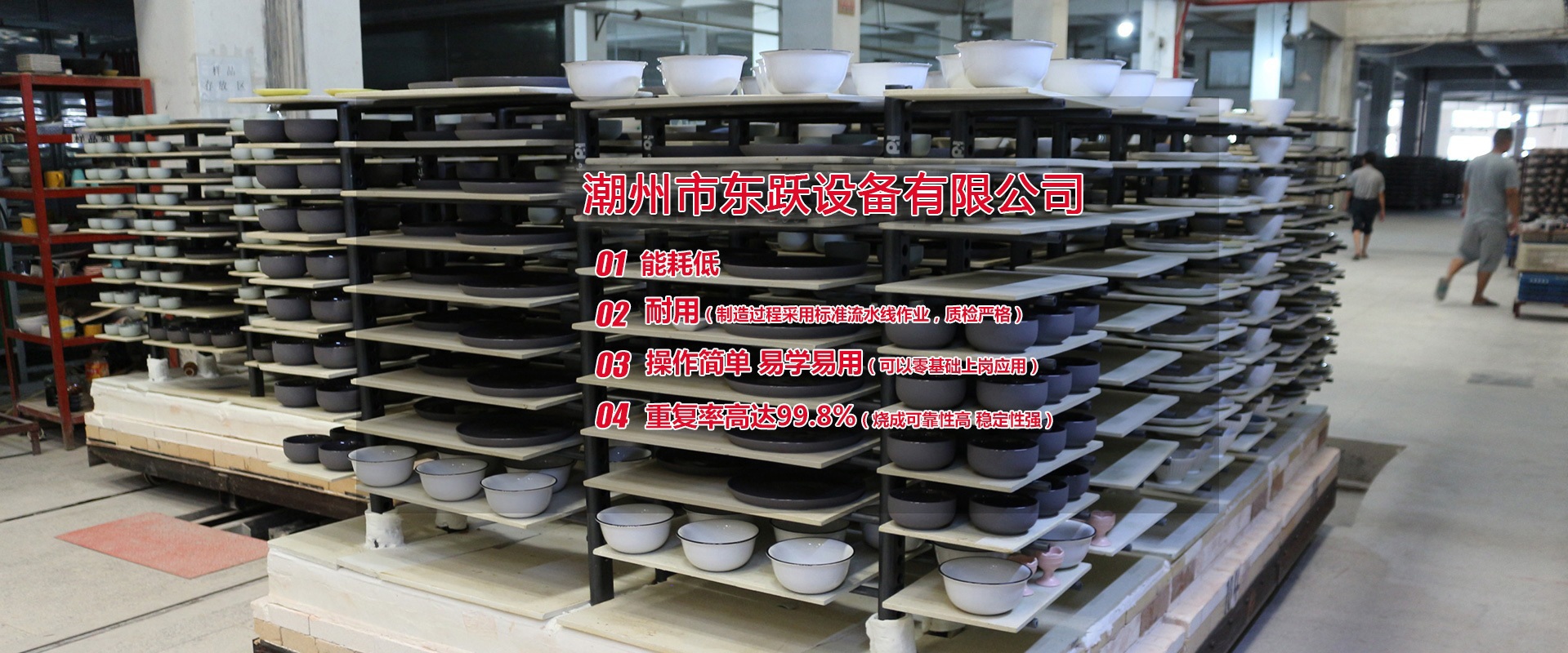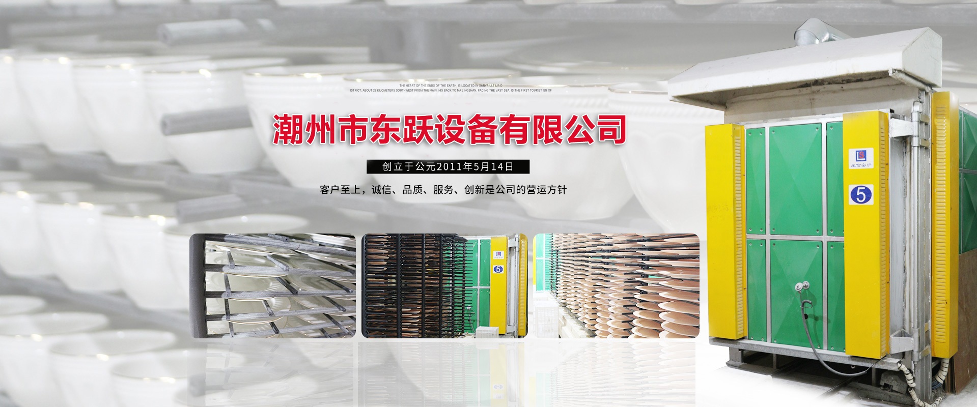 潮州市東躍設備有限公司,創(chuàng)立于公元2011年5月14日,經過進十年的努力,已發(fā)展成一家擁有集研發(fā)、設計、加工制造、安裝、調試與售后一體化的窯爐公司。設計理念:1.能耗低2.耐用(制造過程采用標準流水線作業,質檢嚴格)3.操作簡單 易學易用(可以零基礎上崗應用)4.重復率高達99.8%(燒成可靠性高 穩(wěn)定性強)   現有設計人員10名,加工制造和安裝人員約100人,調試人員10人,售后服務人員10人,公司總人數約200人。公司本著以人為本的發(fā)展策略,不斷網絡人才,發(fā)展自動化窯爐技術。